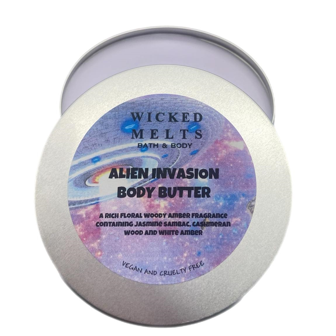 Alien Invasion Body Butter – AÂ rich floral woody amber fragrance containing jasmine sambac, cashmeran wood and white amber it is a fragrance whose magic trails awakens your emotions.