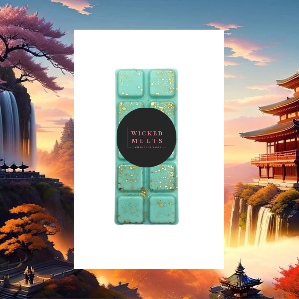 Ancient Jing Wax Melt 50g Snap Bar – A floral accord with top notes of sweet almond blended with fresh clean green tones. A heart of white florals rest on a base of soft woods.
