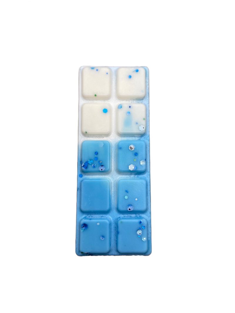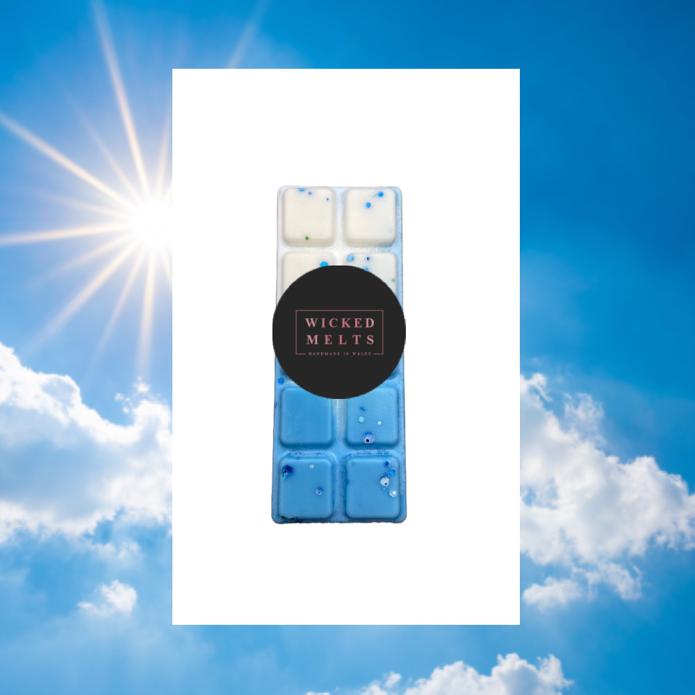 Blue Skies Wax Melt 50g snap bar  – A fruity and floral fragrance with fresh apple, floral lily, rose, jasmine and sweet orange blossom