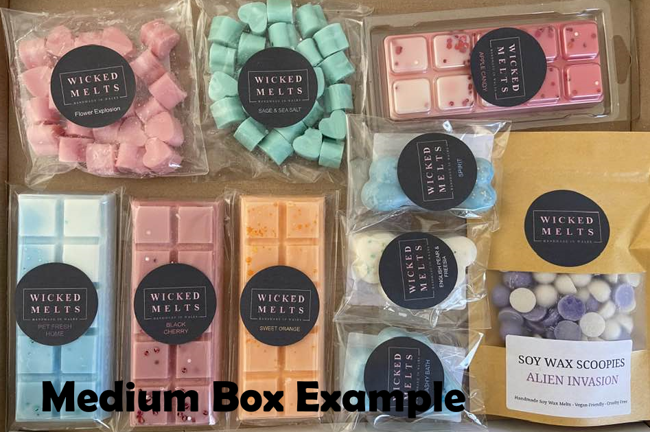 You will receive a random selection of wax melts, these could be Scoopies, Mini Hearts, Large Hearts, Snapbars, Clamshells, Shot Pots, Deli Pots, Shaped Clamshells.